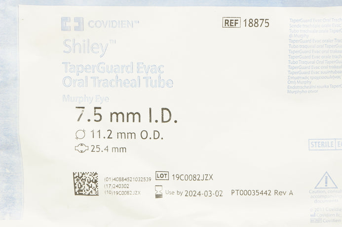 - Covidien 18875 Shiley Oral Tracheal Tube 7.5mm x 11.2mm x 25.4mm
