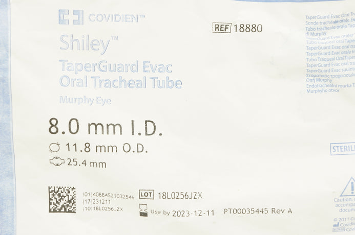 - Covidien 18880 Shiley Oral Tracheal Tube 8.0mm x 11.8mm x 25.4mm