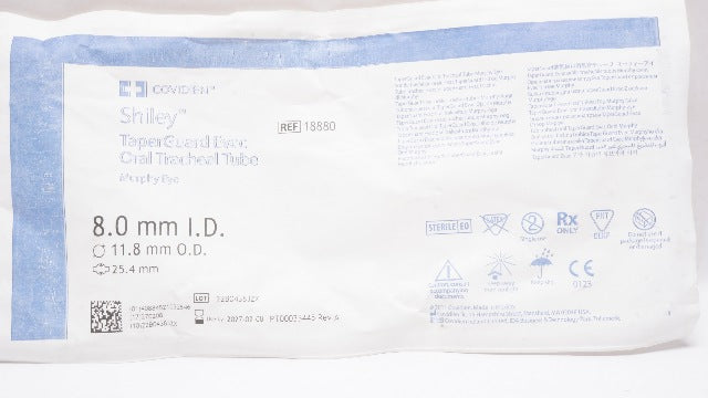 - Covidien 18880 Shiley TaperGuard Evac Oral Tracheal Tube 8.0ID x 11.8mmOD x 25.4