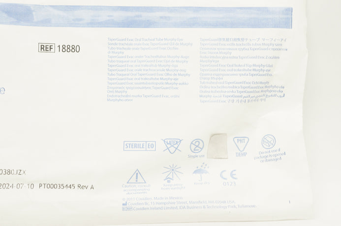 - Covidien 18880 Shiley TaperGuard Evac Oral Tracheal Tube 8.0mm x 11.8mm x 25.4mm