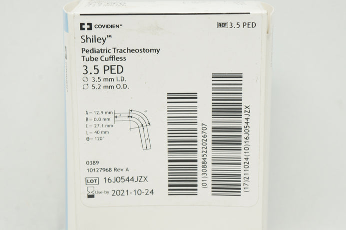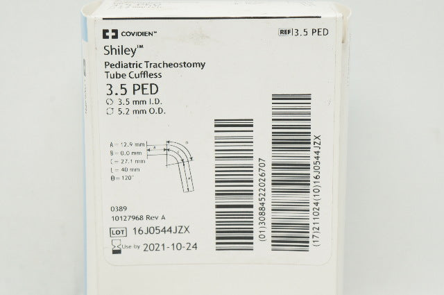 - Covidien 3.5PED Shiley Pediatric Tracheosotomy Tube Cuffless 3.5 ID 5.2mm OD (x)
