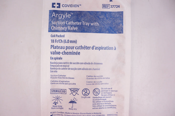 - Covidien 37724 Argyle Suction Catheter Tray with Chimney Valve 18 Fr/Ch