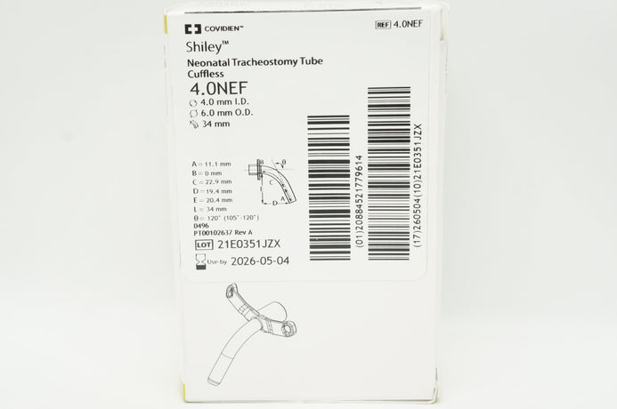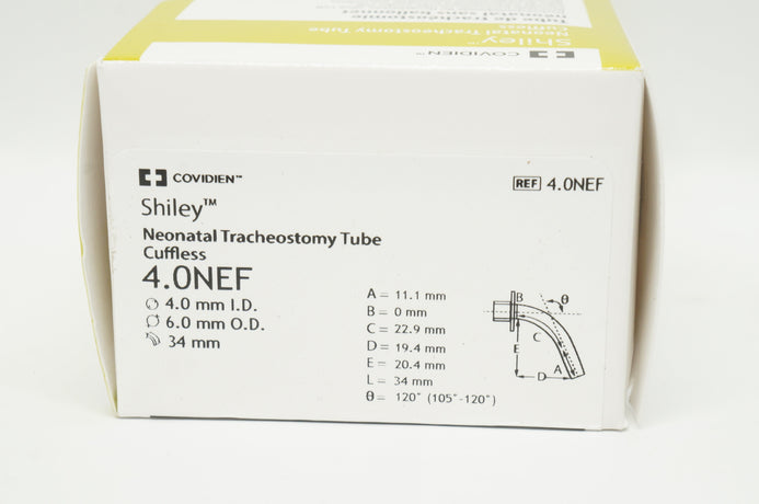 - Covidien 4.0NEF Shiley Neonatal Tracheostomy Tube 4.0 x 6.0 x 34mm