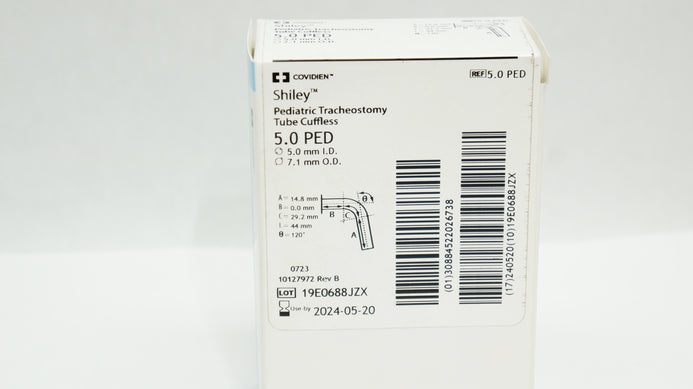 - Covidien 5.0PEF Shiley Pediatric Tracheostomy Tube Cuffless 5.0mm x 7.3mm