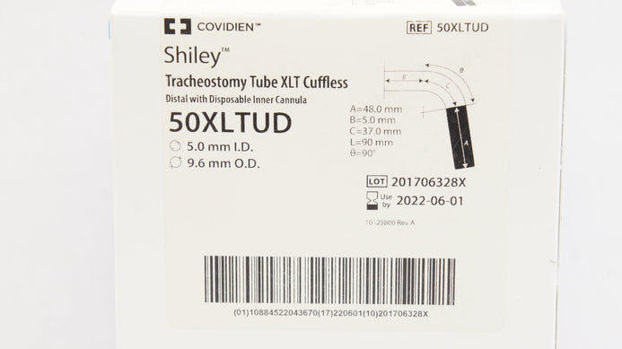 - Covidien 50XLTUD Shiley Tracheostomy Tube XLT Cuffless 5.0mm I.D., 9.6mm O.D.(x)