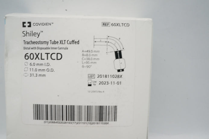 - Covidien 60XLTCD Shiley Tracheostomy Tube XLT Cuffed 6.0mm x 11.0mm x 31.3mm