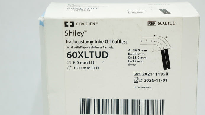 Covidien 60XLTUD Shiley Tracheostomy Tube XLT Cuffless 6.0mm x 11.0mm