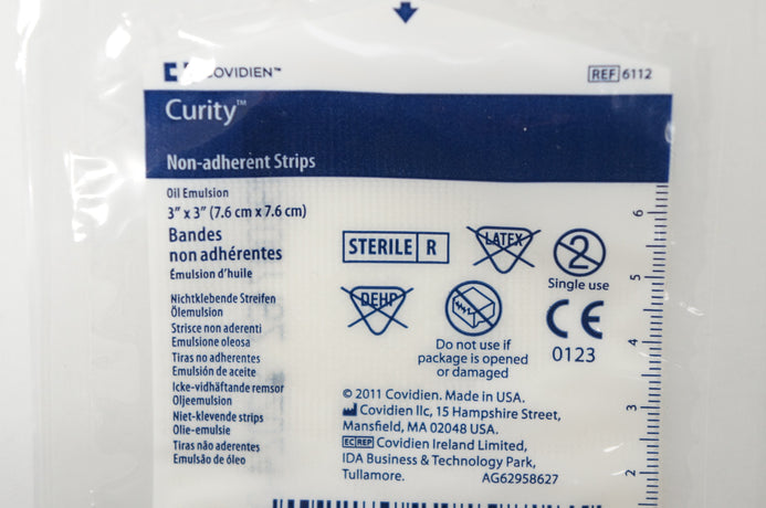 Covidien 6112 Curity Non-Adherent Strips Oil Emulsion 3 inch x 3 inch