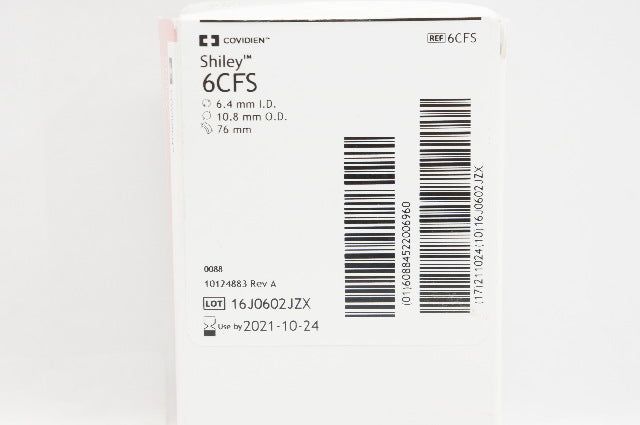 - Covidien 6CFS Shiley Tracheostomy Tube Cuffless 6.4mm ID x 10.8mm OD x 76mm (x)