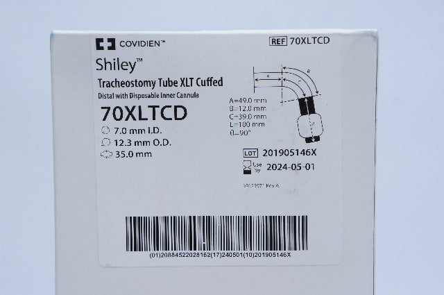 - Covidien 70XLTCD Shiley Tracheostomy Tube XLT Cuffed 7.0mm ID x 12.3mm OD