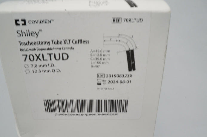 - Covidien 70XLTUD Shiley Tracheostomy Tube XLT Cuffless 7.0mm x 12.3mm