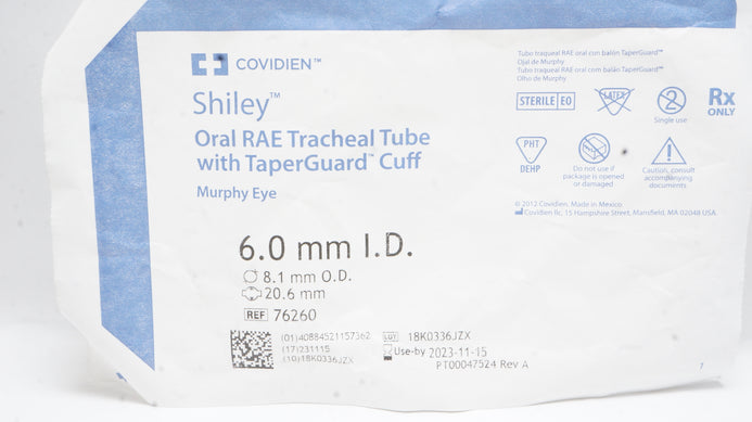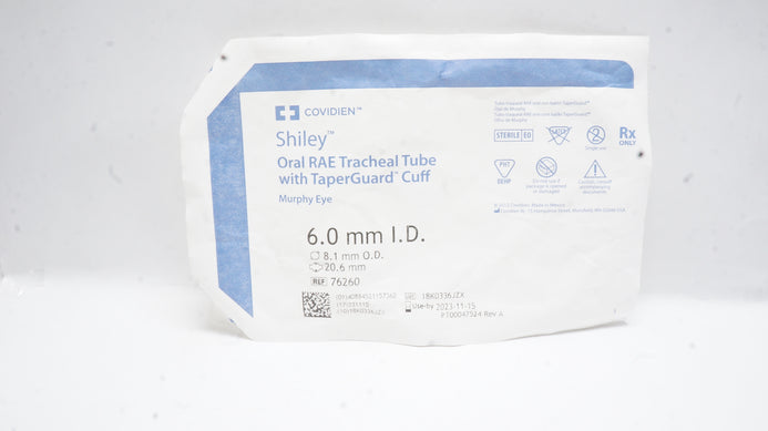 - Covidien 76260 Shiley Oral RAE Tracheal Tube 6.0mm ID x 8.1mm OD x 20.6mm (x)