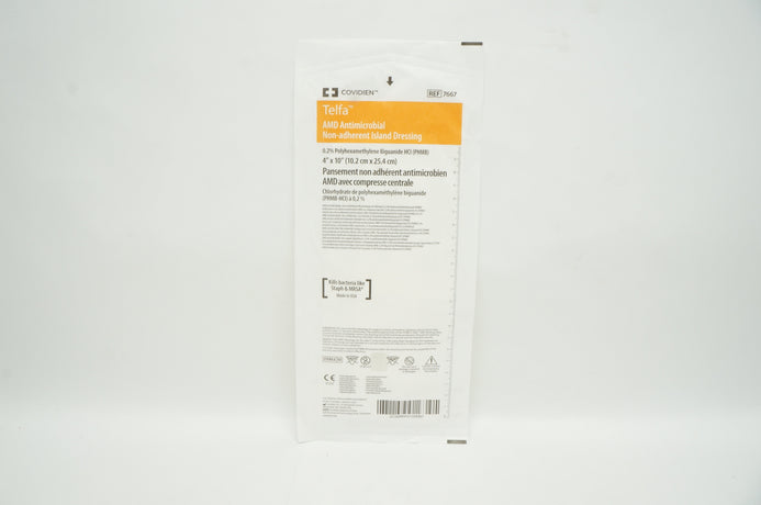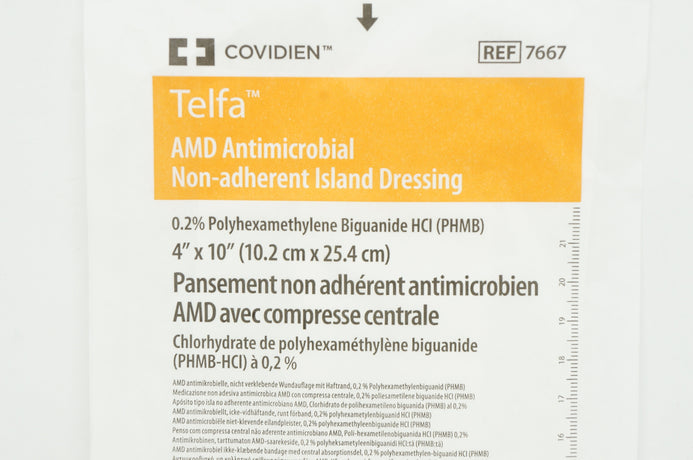 - Covidien 7667 Telfa AMD Antimicrobial Non-Adherent Island Dressing 4 x 10 inch