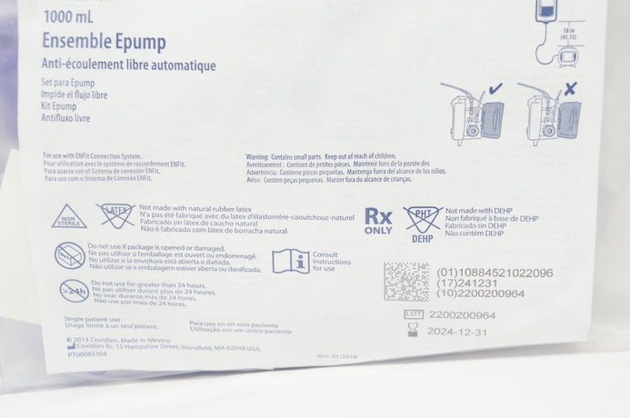 - Covidien 773656 Kangaroo Epump Set Anti-Free Flow 1000mL ~ Lot of 10