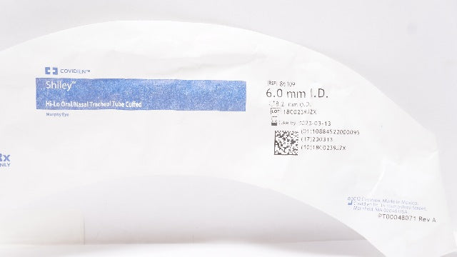 - Covidien 86109 Shiley Hi-Lo Oral/Nasal Tracheal Tube Cuffed 6.0 ID x 8.2mm OD(x)