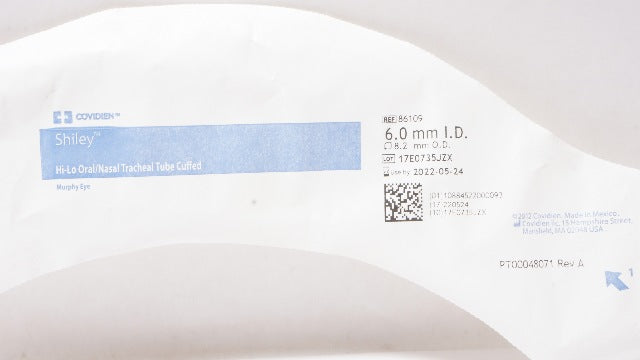 - Covidien 86109 Shiley Hi-Lo Oral/Nasal Tracheal Tube Cuffed 6.0ID x 8.2mm OD (x)