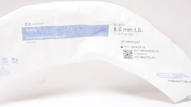 - Covidien 86113 Shiley Hi-Lo Oral/Nasal Tracheal Tube Cuffed 8.0ID x 10.8mm OD