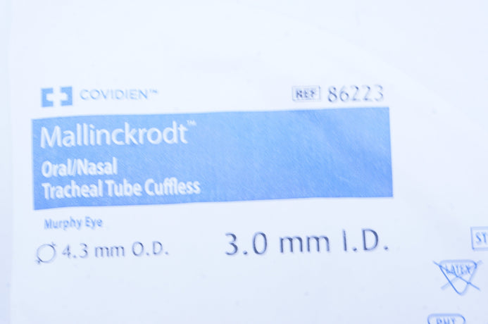 - Covidien 86223 Mallinckrodt Oral/Nasal Tracheal Tube Cuffless 3.0mm x 4.3mm (x)