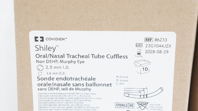 - Covidien 86233 Shiley Oral/Nasal Tracheal Tube 2.5mm ID x 3.6mm OD - Box of 10