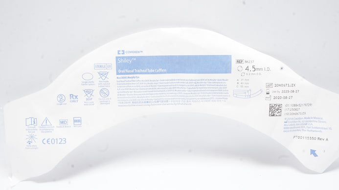 - Covidien 86237 Shiley Oral/Nasal Tracheal Tube Cuffless 4.5mm ID x 6.2mm OD