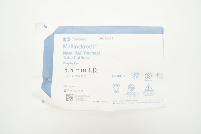 - Covidien 86288 Mallinckrodt Nasal RAE Tracheal Tube Cuffless 5.5mm ID, 7.4mm OD
