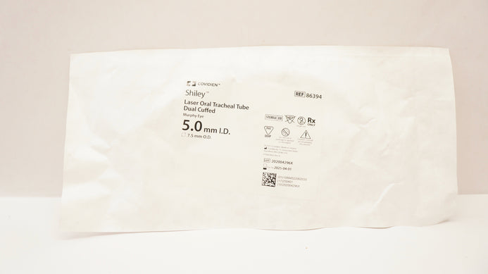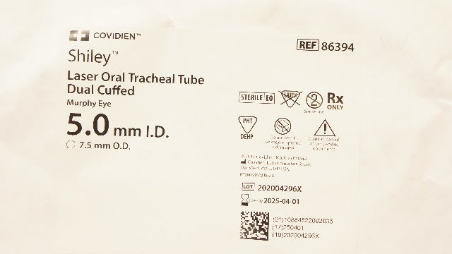 - Covidien 86394 Shiley Laser Oral Tracheal Tube Dual Cuffed 5.0mm ID x 7.5mm OD