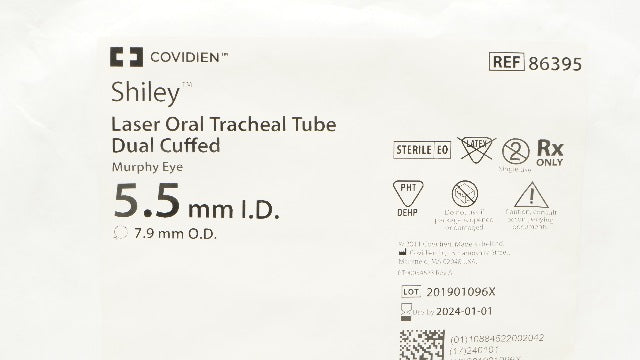 - Covidien 86395 Shiley Laser Oral Tracheal Tube Dual Cuffed 5.5mm ID 7.9mm OD (x)
