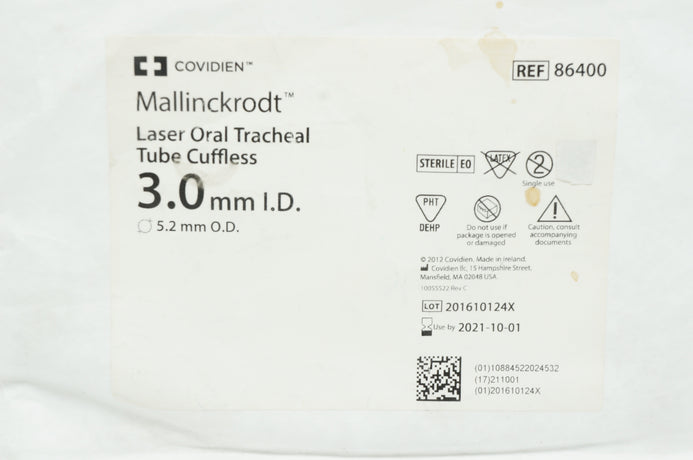 - Covidien 86400 Mallinckrodt Laser-Flex Tracheal Tube Cuffless 3.0 ID x 5.2mm OD