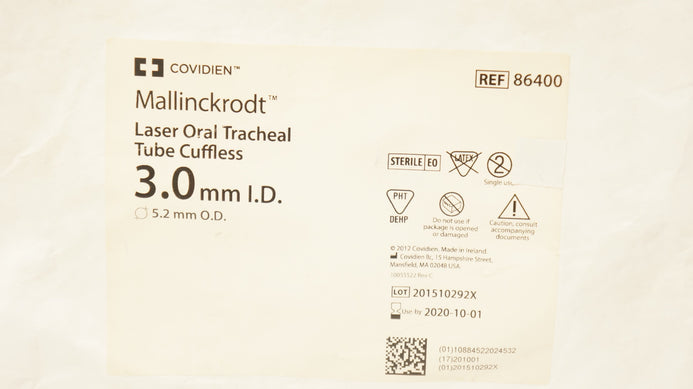 - Covidien 86400 Mallinckrodt Laser-Flex Tracheal Tube Cuffless 3.0 x 5.2mm (x)
