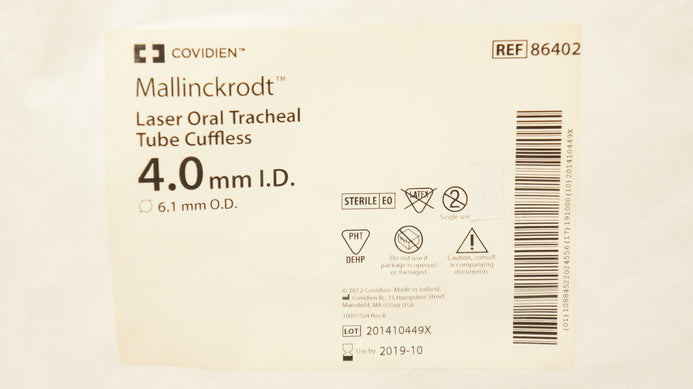 - Covidien 86402 Mallinckrodt Laser Oral Tracheal Tube Cuffless 4.0mm 6.1mm (x)