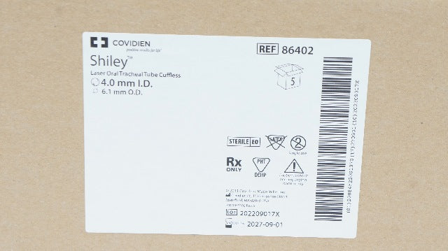 - Covidien 86402 Shiley Laser Oral Tracheal Tube Cuffless 4.0mm x 6.1mm - Box of 5