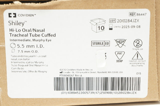 Covidien 86447 Shiley Hi-Lo Oral/Nasal Tracheal Tube 5.5ID x 7.5mmOD - Box of 10