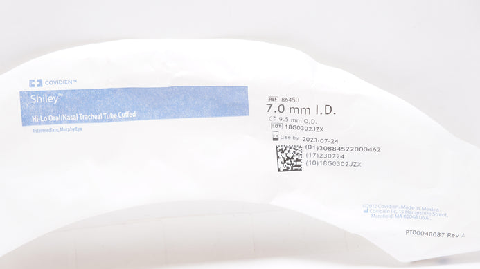 - Covidien 86450 Shiley Hi-Lo Oral/Nasal Tracheal Tube Cuffed 7 ID x 9.5mm OD (x)