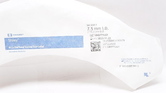 - Covidien 86451 Shiley Hi-Lo Oral/Nasal Tracheal Tube Cuffed 7.5ID x 10.2mmOD(x)