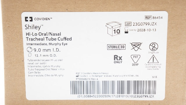 - Covidien 86454 Shiley Hi-Lo Oral/Nasal Tracheal Tube Cuffed 9.0x12.1mm-Box of 10