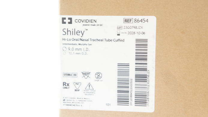 - Covidien 86454 Shiley Hi-Lo Oral/Nasal Tracheal Tube Cuffed 9.0x12.1mm-Box of100