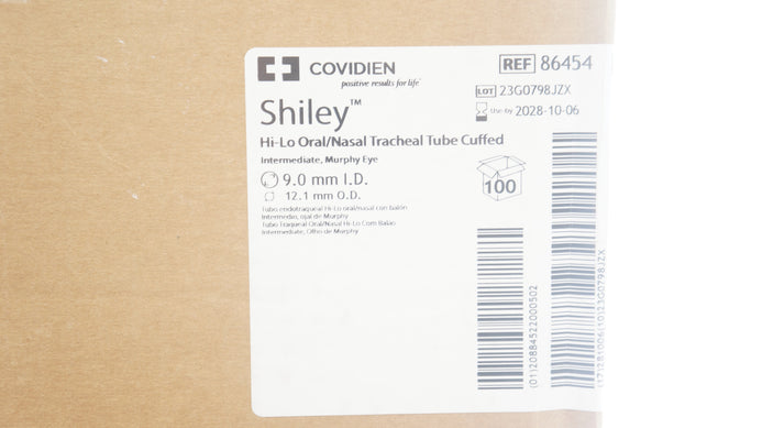 - Covidien 86454 Shiley Hi-Lo Oral/Nasal Tracheal Tube Cuffed 9.0x12.1mm-Box of100