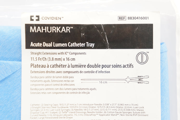 - Covidien 8830416001 Mahurkar Acute Dual Lumen Cath Tray 11.5Fr x 16cm (x)