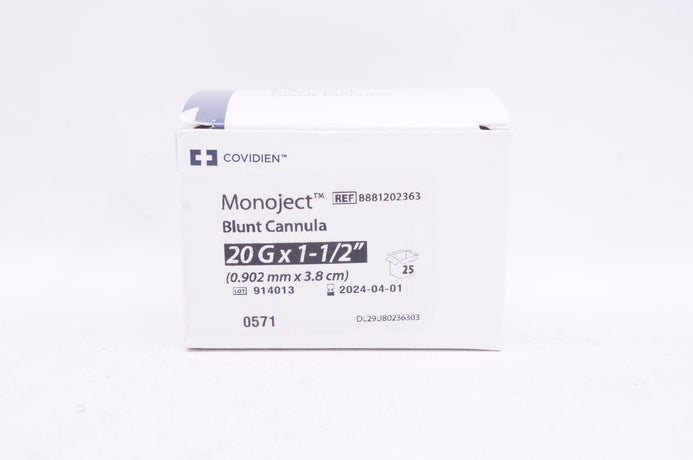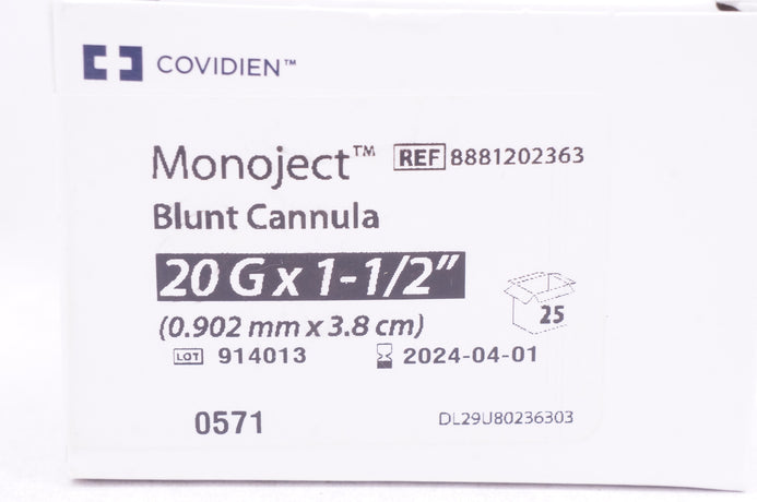 - Covidien 8881202363 Monoject Blunt Cannula 20G x 1-1/2inch ~ Box of 25