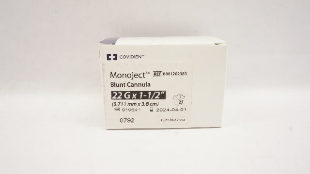 - Covidien 8881202389 Monoject Blunt Cannula 22G x 1 1/2 Inch - Box of 25