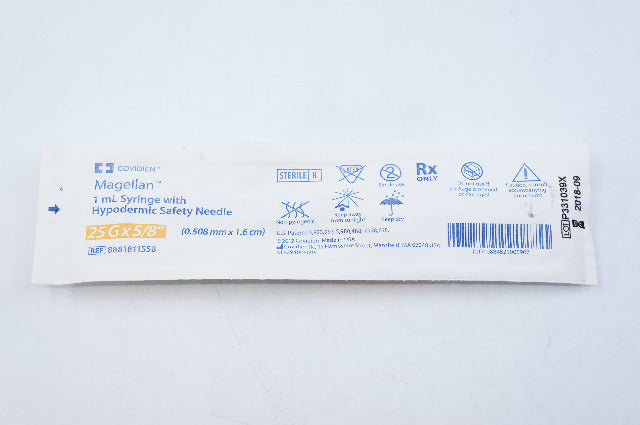 - Covidien 8881811558 Magellan 1mL Syringe W/Hypodermic Safety Ndle 25G x 5/8in(x)