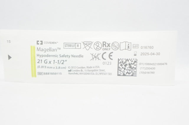 - Covidien 8881850115 Magellan Hypodermic Safety Ndle 21G x 1-1/2inch