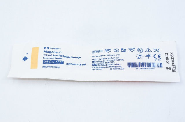 - Covidien 8881892950 Magellan 1/2mL Insulin Safety Syringe 29G x 1/2inch (x)