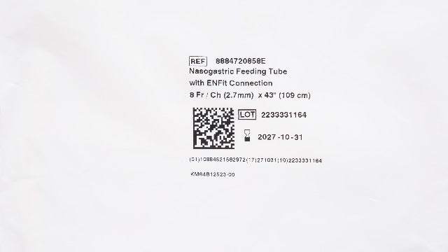 - Covidien 8884720858E Nasogastric Feeding Tube 8Fr/Ch x 43In