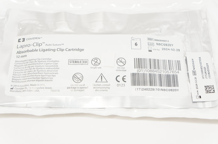 - Covidien 8886848812 Lapro-Clip Absorbable Ligating Cartridge 12mm