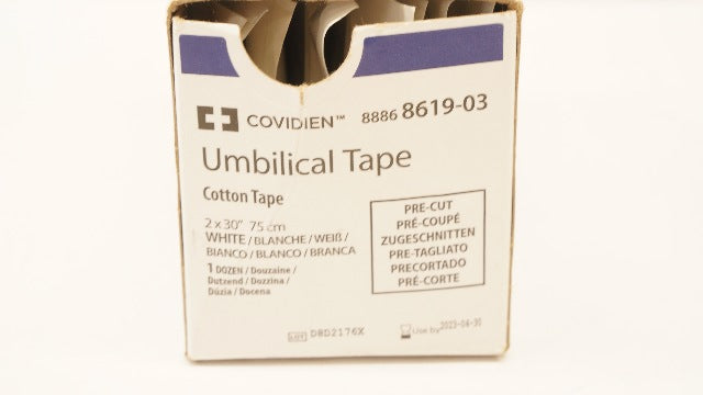 - Covidien 88868619-03 Umbilical Tape Cotton Tape 2x30 inch 75 cm White - Box of 9