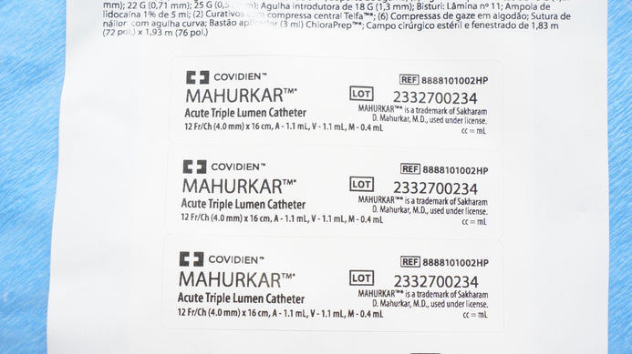 Covidien 8888101002HP MAHURKAR Acute Triple Lumen Cath. Tray 12Fr x 16cm (x)