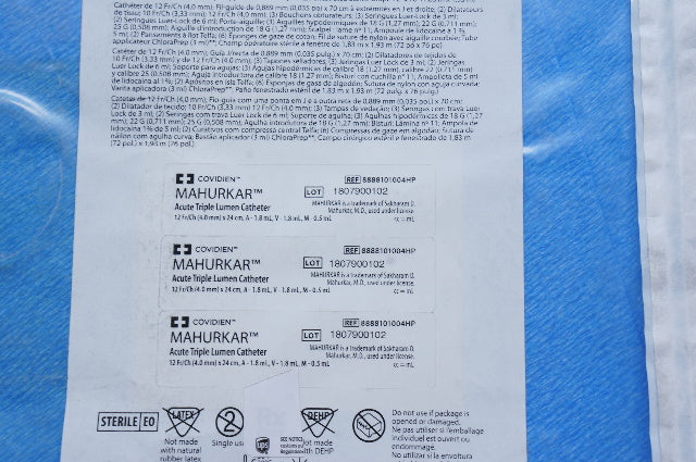 - Covidien 8888101004HP MAHURKAR Acute High Pressure Triple Lumen Cath. 12Fr. (x)