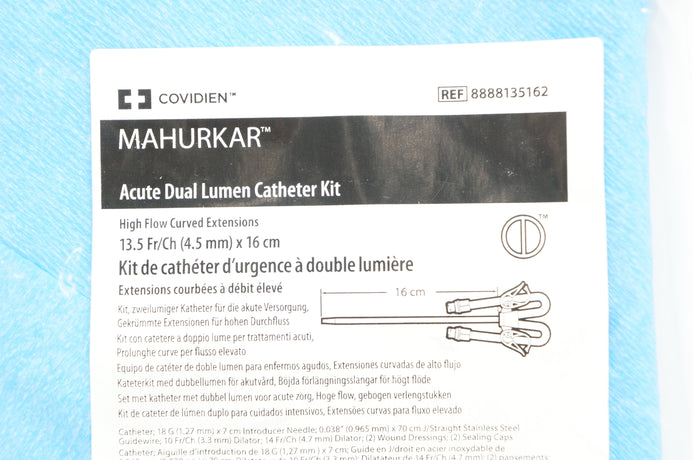 - Covidien 8888135162 Mahurkar Acute Dual Lumen Catheter Kit 13.5Fr x 16cm
