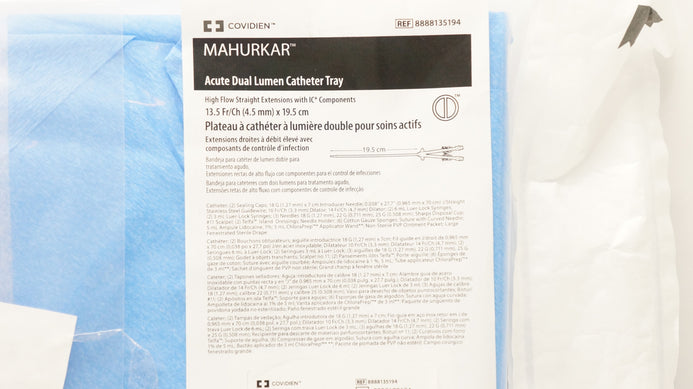 - Covidien 8888135194 MAHURKAR Acute Dual Lumen Cath. Tray 13.5Fr. x 19.5cm (x)